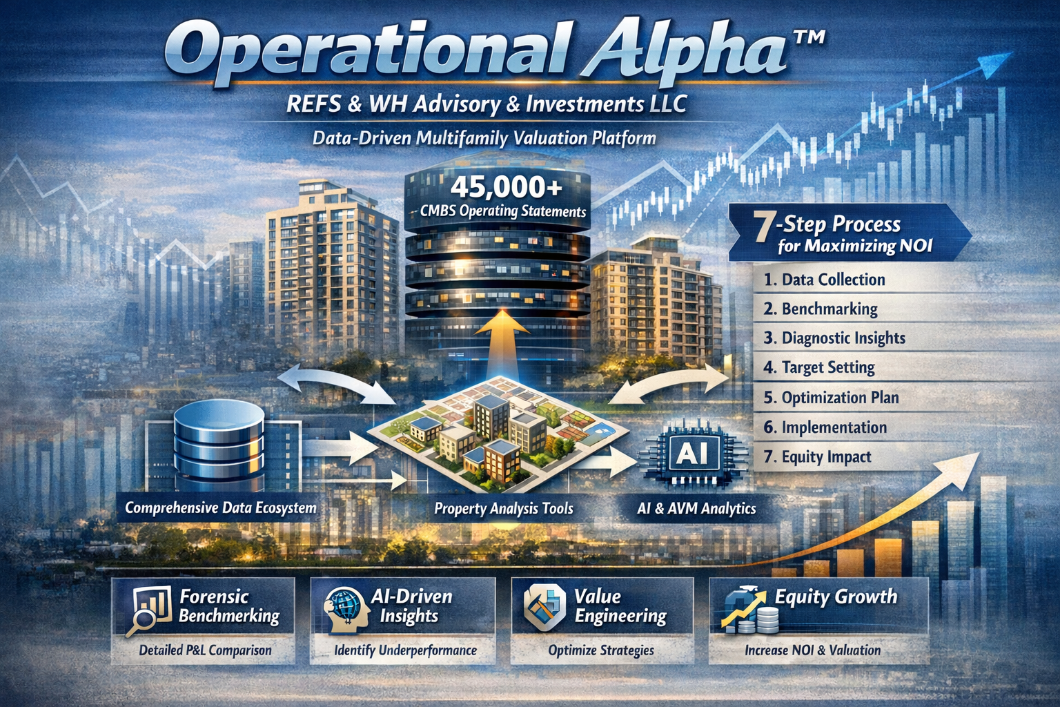 REFS has partnered with WH Advisory & Investments LLC (“WHA”) to provide a premier data-driven platform for multifamily property valuation. WHA is led by Webster Hughes, PhD, an investment industry veteran with deep expertise in quantitative financial analysis.